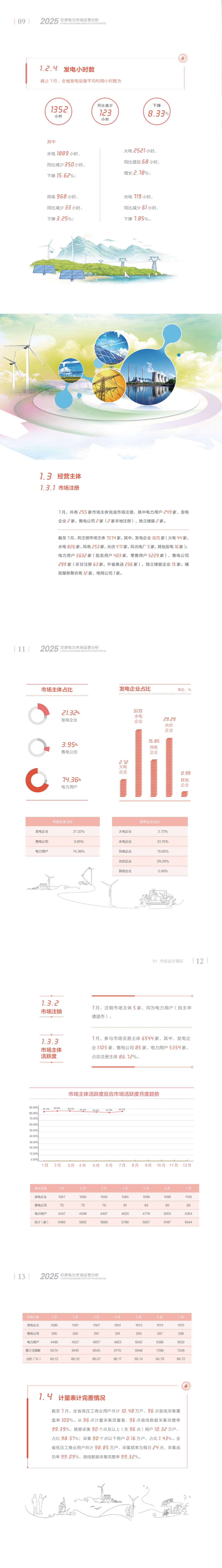 7月,甘肃省内中长期市场化交易电量80.05亿千瓦时,同比降低7.55%,均价214.31元/兆瓦时,同比下降19.10%。其中省内直接交易62.87亿千瓦时,代理购电16.52亿千瓦时;跨省区外送电量 87.17亿于瓦时,同比增长28.29%,外购电量 2.87亿千瓦时,同比增长70.2%。省内现货市场发电侧正差电量64.11亿干瓦时,负偏差电量-59.18 亿千瓦时,正负相抵后,净偏差电量4.93亿千瓦时。