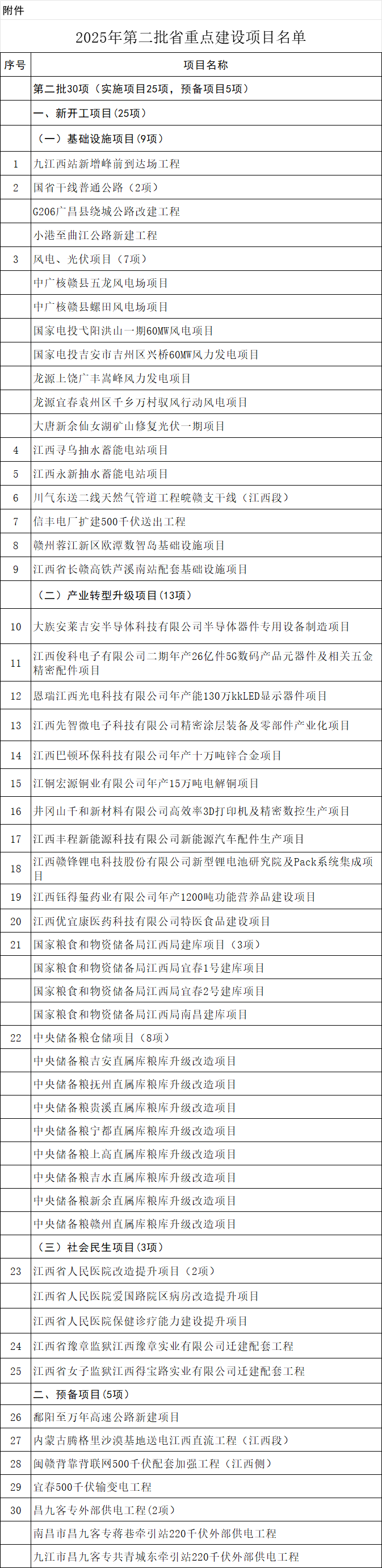 江西省发展改革委关于下达2025年第二批省重点建设项目计划的通知