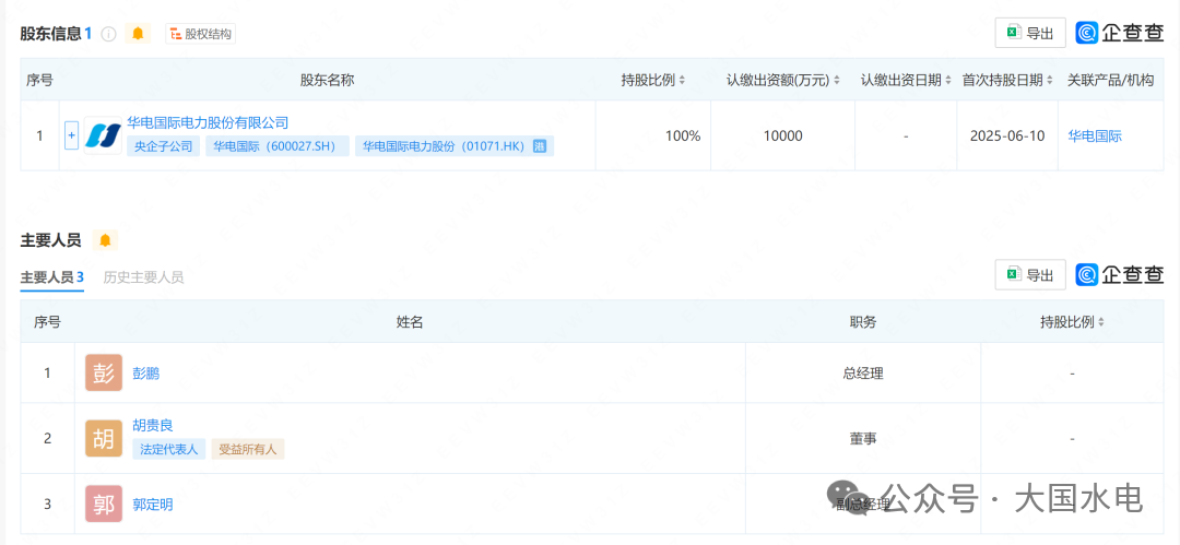 6月10日,CPEM大国水电从企查查获悉华电抽蓄工程管理(成都)有限公司成立!法人胡贵良,注册资本1亿元,股东为华电国际电力股份有限公司。据CPEM大国水电获悉华电抽蓄工程管理(成都)有限公司于6月3日在成都组织召开成立大会暨第一次干部职工大会与进驻靖宇项目动员会。