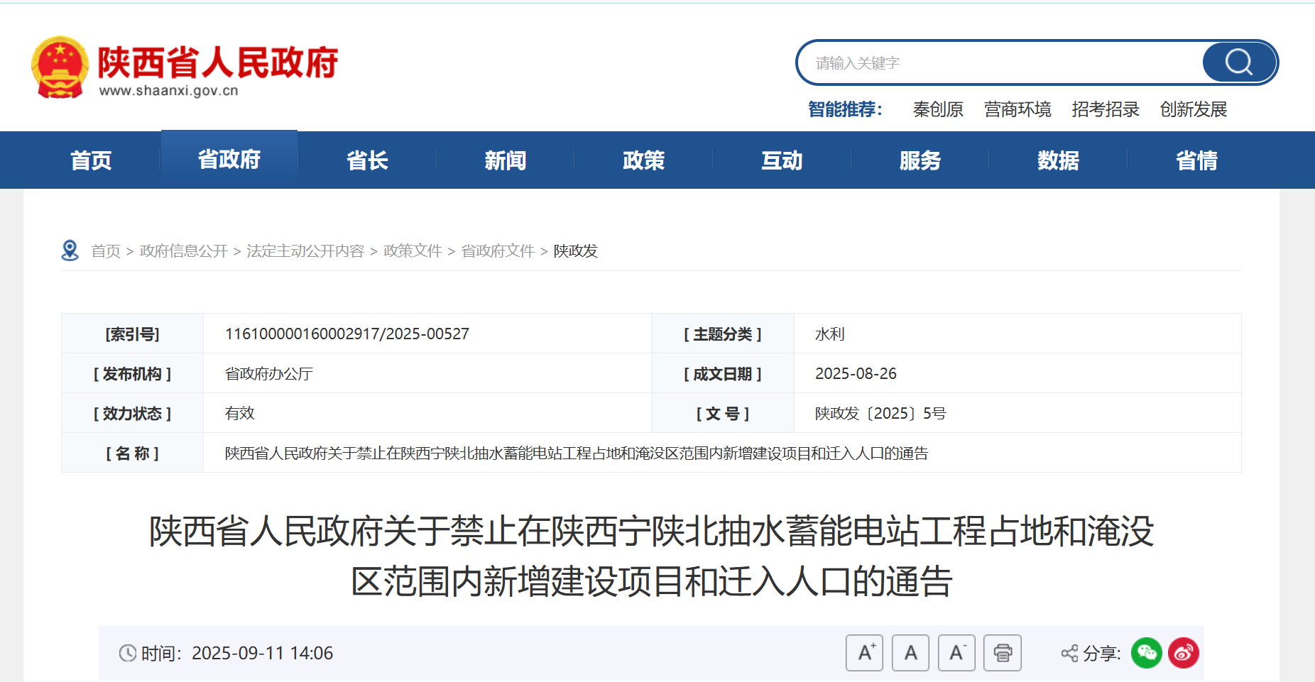 2025年9月11日,陕西省人民政府发布了《关于禁止在陕西宁陕北抽水蓄能电站工程占地和淹没区范围内新增建设项目和迁入人口的通告》,标志着这一总投资超百亿元的重大能源基础设施项目正式进入实质性建设前期阶段。该通告旨在规范工程建设征地与移民安置工作,确保项目顺利推进。