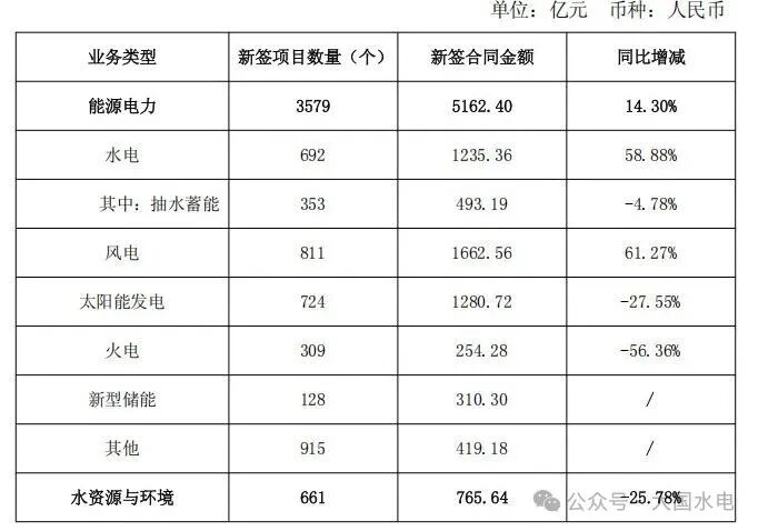 其中,抽水蓄能业务新签项目353个,新签合同金额达到493.19亿元。