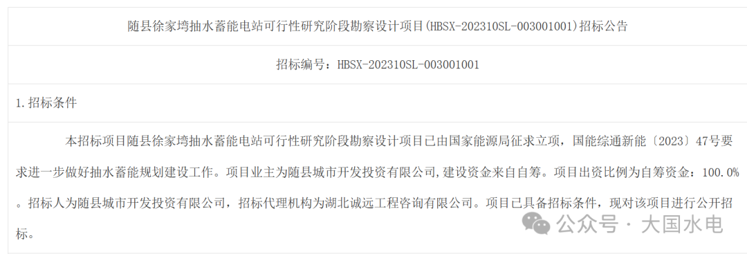 前期阶段(2022-2023年)由随县城市开发投资有限公司作为项目前期业主,负责项目立项、勘察设计及可行性研究招标工作。中国电建集团中南勘测设计研究院有限公司以报价 158796700 元成功中标可行性研究阶段勘察设计项目。