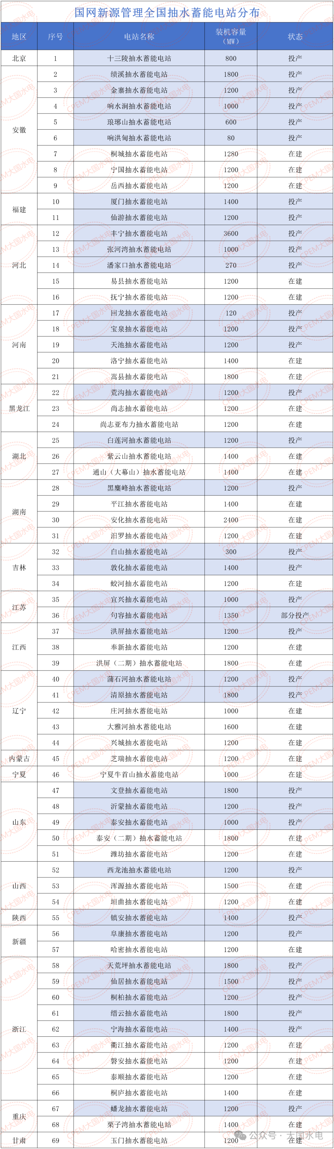 国网新源抽水蓄能电站分布覆盖全国多个省份,截至2025年9月底,管理抽水蓄能电站69座,管理装机容量9313.4万千瓦,以下是CPEM大国水电整理的已投产和在建电站分布及关键信息: