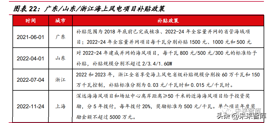 国补退坡翘盼地补接力,有望提升产业链降本动力。自 2022 年起,我国新增 海上项目将不再享受国家补贴,转由地方政府给予补贴。国家补贴时期,高电价可 保障企业利润,推动地方政府税收增加,因此降本意愿较低;国补退坡地补接力后,地方政府有动力推动产业链成本下降,来保障企业利润以及税收收益。
