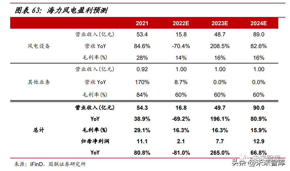 风电铸件量利齐升,齿轮箱零部件放量在即。受益于产能扩产,以及海风装机 需求回暖,公司风电铸件的海风出货占比有望提升,再叠加原材料价格回落,公司 风电铸件业务盈利能力有望修复,预计 2022-23 年公司风电铸件出货 5/10 万吨;公司的风电齿轮箱零部件设备已经与客户进行小批量产品试制,预计 2023-24 年 齿轮箱零部件业务出货 2/4 万吨。我们预计 2022-24 年公司归母净利润分别为 1.31/3.73/6.31 亿元,同比25.69%/185.06%/69.03%;EPS 分别为 0.61/1.74/2.94 元/股。