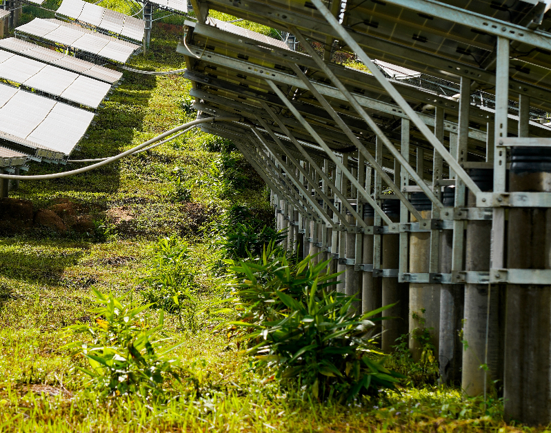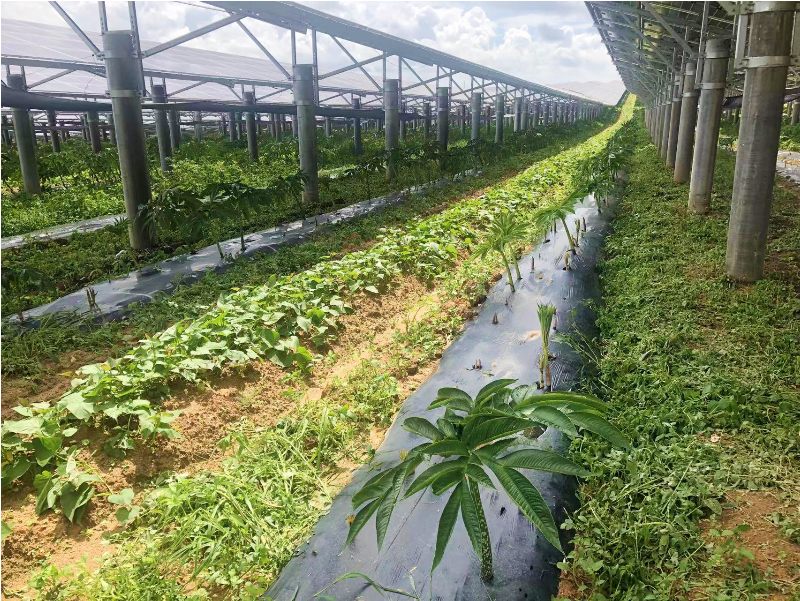 红彤彤的火龙果,满地跑的黑山羊、走地鸡、五指山猪,具有药用价值的广藿香、益智果,多吃也不怕长胖的魔芋……它们在光伏板下生机盎然,呈现“光伏农场”与自然环境和谐共生的生态画卷。