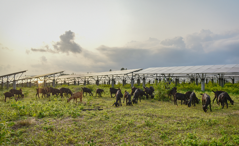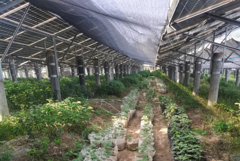 在阳江市阳西县,作为开发公司首个光伏农场,广东粤电织篢农场21队农业光伏综合开发项目通过利用光伏板下方空间,探索式开展光伏板下黑山羊、走地鸡、猪等养殖以及火龙果、魔芋等农作物的种植,打破光伏复合项目只有“光”没有“农”的局面,使得项目蜕变为一个集清洁能源发电、农业种植养殖于一体的生态环保项目,项目于2018年荣获“广东省农业光伏示范基地”。