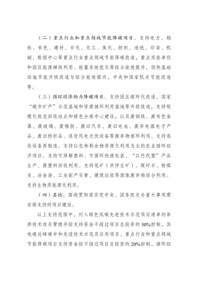 4月8日,国家发展改革委印发《节能降碳中央预算内投资专项管理办法》的通知。本专项重点支持重点行业和重点领域节能降碳、循 环经济助力降碳等方向,重点支持内容包括:碳达峰碳中和先进技术示范及应用项目等。支持国家碳达峰试点城市和园区使用生物质能、地热能等可再生能源替代化石能源示范项目。