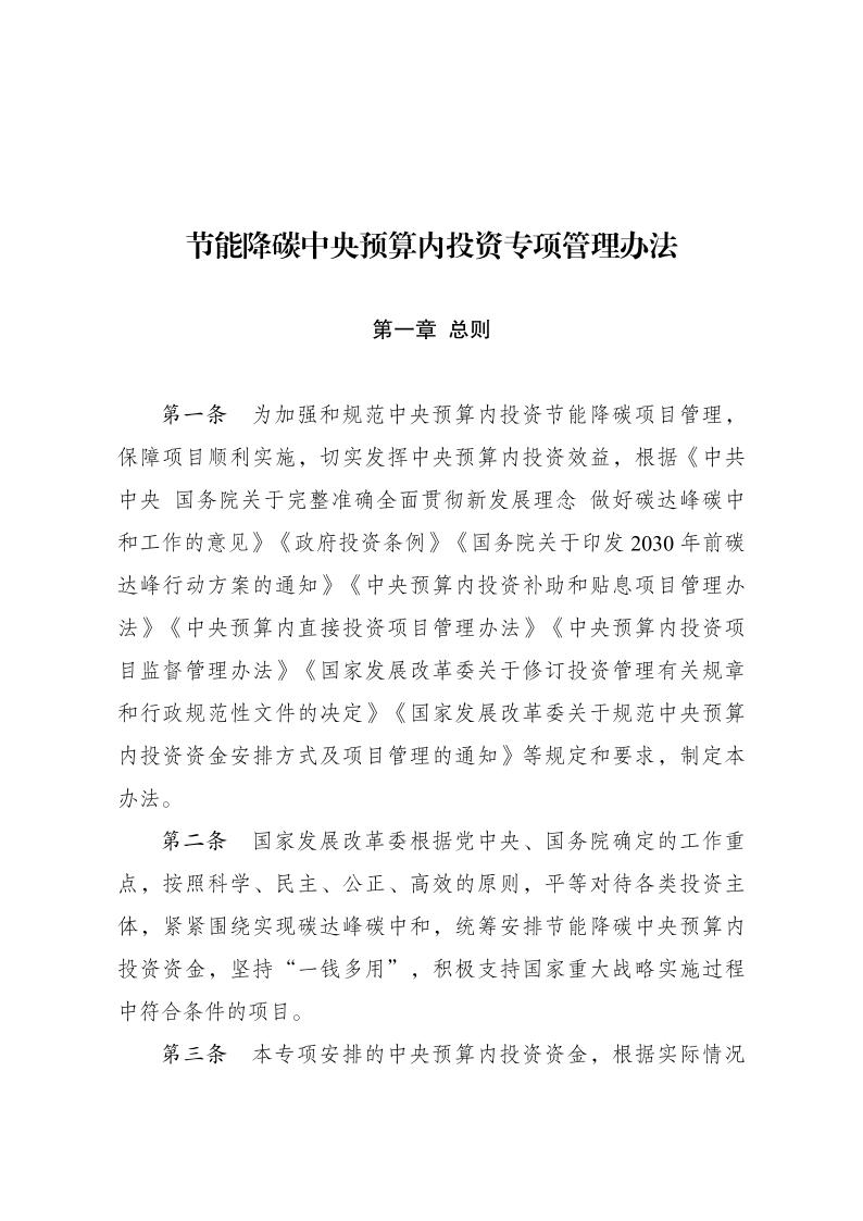 国家发展改革委关于印发《节能降碳中央预算内投资专项管理办法》的通知